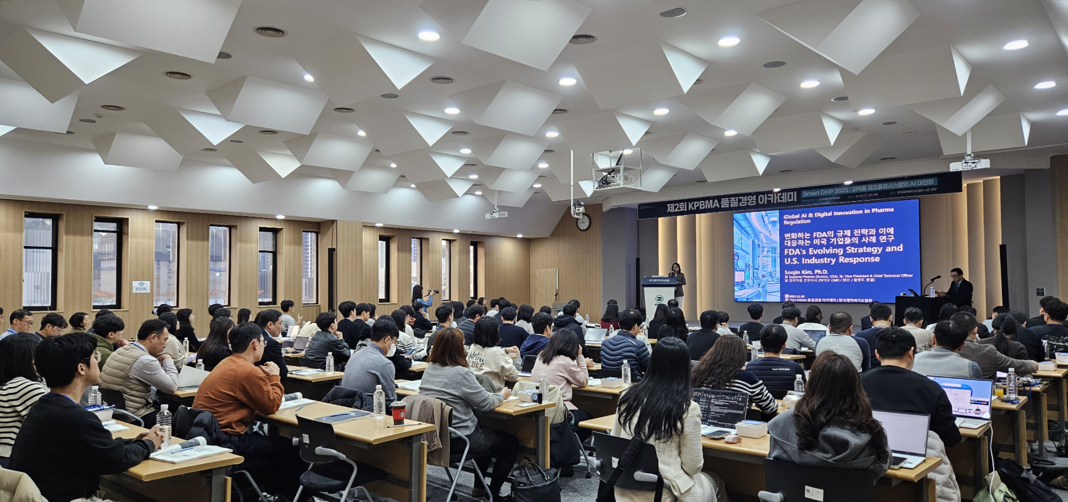 제2회 KPBMA 품질경영아카데미 성료(11.20) 협회는 'Smart GMP 2025 의약품 제조품질시스템의 AI대전환'을 주제로 AI·빅데이터·로봇 기술을 활용한 품질경영 전략과 글로벌 규제 대응, 스마트 제조 혁신 사례를 제약바이오 제조·품질 담당자 100여명과 공유하였습니다.