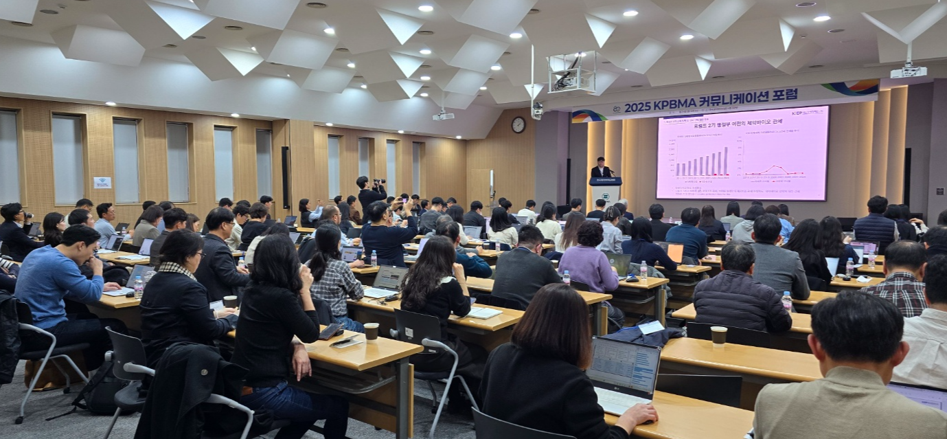2025 KPBMA 커뮤니케이션 포럼 성료(11.24) 협회 회원사 홍보담당자와 담당 기자 등 150여 명이 참석한 가운데, 산업의 주요 현안과 AI 신약개발, 정책 · 약가제도 개선 방향 등을 공유하였습니다. 질의응답과 홍보 교류 세션을 통해 상호 소통과 협력의 시간을 이어갔습니다.