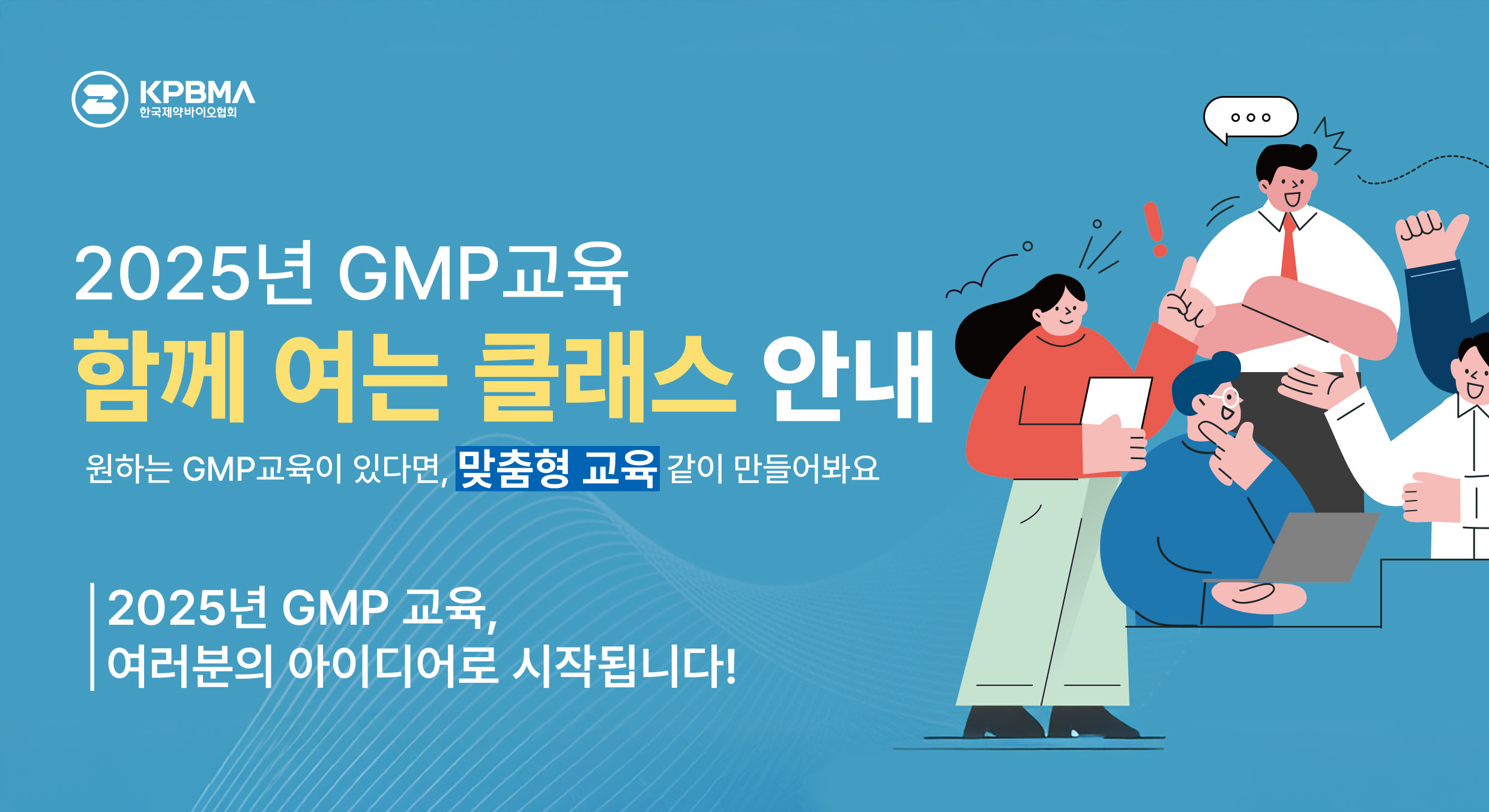 협회는 여러분의 아이디어를 바탕으로 맞춤형 교육 프로그램을 직접 기획·운영하는 「함께 여는 클래스」를 운영하고 있습니다. 여러분께서 필요로 하시는 GMP분야에 대한 교육 주제를 자유롭게 제안해 주시면 적극 반영해 나가겠습니다.